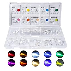 DiCUNO 100pcs 5mm Light Emitting Diode, Round Clear LED Assorted Kit 10 Colors, White/Red/Yellow/Green/Blue/Pink/Orange/Warm White/UV/Chartreuse, 10 Colors x 10pcs Diodes
