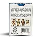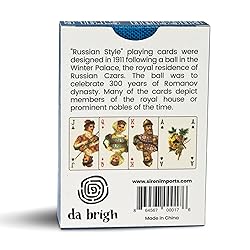 - Historical design: This deck celebrates 300 years of the Romanov dynasty with stunning illustrations inspired by the 1911 Winter Palace ball. Each card is a historical artifact, capturing the grandeur and elegance of the Russian royal court. Royal characters: Featuring detailed depictions of members of the royal house and prominent nobles, every card in this deck tells a story of the past. These illustrations offer a glimpse into the lives and fashions of the Russian aristocracy during the early 20th century. Premium quality: Crafted from high-quality cardstock, these playing cards are designed for durability and a luxurious feel. Whether for regular gameplay or as a display piece, the superior construction ensures they remain pristine over time. Artistic detail: The intricate designs on each card reflect the opulence and sophistication of the era, with authentic period costumes and detailed artwork. This level of artistry makes the deck not only functional but also a beautiful collectible. Unique packaging: The deck comes in an elegantly designed box that mirrors the luxurious nature of the cards within.