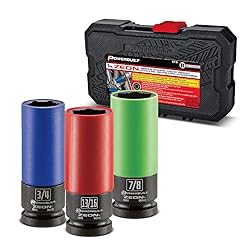Powerbuilt Lug Nut Socket Set for Damaged, Rusted, or Rounded Nuts, 3 Piece SAE Zeon Design, Protective Sleeve, Storage Case - 240097