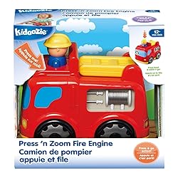 - The Kidoozie Press 'n Zoom Fire Engine features lots of little enticing details. The wheels spin and the ladder jumps as it rolls. Plus it comes in bright, enticing colors with safe rounded edges, and even features a little dog pictured behind the windshield. You want to give your child good role models from the start like doctors, firefighters, and police officers. Now with the Press 'n Zoom Fire Engine, they have a little hero of their own to help. They'll have hours of fun getting their pal to the scene of the blaze. The Press 'n Zoom vehicles from Kidoozie move without any power source. All you have to do is press the hero's head and watch the vehicle race across the floor. No batteries required! It's the perfect toy that never stops rolling. Kidoozie toys are engaging, educational and FUN. Our broad range of high-quality toys have won numerous awards and are safe and well designed. Innovative toys encourage movement, problem-solving and pretend play through various themes. Stimulate the imagination and enable learning through play. Package contains (1) Kidoozie Press 'n Zoom Fire Engine with press and go action. Features moving ladder, peek-a-boo head, and spinning wheels. No batteries required. Recommended for children ages 12 months and older.