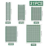 Selection of Multi-Sized Proto Boards - 31 pieces double-sided prototype boards of 5 different size to meet your demands when designing your own Arduino kits, electronic experiments and DIY projects. (10 pieces 2*8cm, 10 pieces 3*7cm, 5 pieces 4*6cm, 5 pieces 5*7cm and 1 pieces 7*9cm PCB boards) Header Connector - 10 pieces 40 pin male header, 10 pieces 40 pin pitch right angle male headers, 10 pieces 40 pin female header; pitch: 2.54mm, single row and straight connector Screw Terminal Block - 8 pieces 5.08-301-2P and 5 pieces 5.08-301-3P ; pitch: 5.08mm, rated voltage: 300V, rated current: 16A Jumper caps - 30 pieces standard 2.54mm pin spacing circuit board jumper cap in 6 colors, 5 pieces per color Environmental and Elegant Packaging - Compact paper package take little footprint