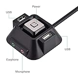 • Features:1.You can extend the computer power switch to the Desktop.2.1.55 meters length is enough for you to use.3.With two USB 2.0 interface, super convenient for you.4.With an audio interface and a microphone interface.5.Can be used in Internet cafes, families, company, etc. Specification:Audio Port: 1Microphone Port: 1USB Port: 2Length: 1.55m / 47.24inchSize: 6 x 6 x 3cm / 2.36 x 2.36 x 1.18inchPackage Weight: 170gQuantity: 1pc Package included:1 x Desktop PC Switch Button Problem:1.The audio port does not work. How should it be operated?2.Why isn't there any input?Solution:1.Check the plug and whether the cable of the port is inserted properly. 2.Because the pin was not inserted correctly.