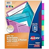 Avery Big Tab Insertable Plastic 2 Pocket Dividers for 3 Ring Binders, 8 Tab Set, Bright Two-Tone Multicolor, Works with Sheet Protectors, 1 Set (11989)