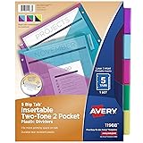 Avery Big Tab Insertable Plastic 2 Pocket Dividers for 3 Ring Binders, 5 Tab Set, Bright Two-Tone Multicolor, Works with Sheet Protectors, 1 Set (00031)