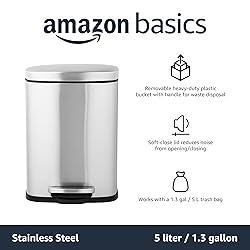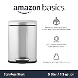 Amazon Basics Canasta de Basura Pequeño para Baño con Cierre Suave y Resistente a las Manchas, Pedal - Acero Inoxidable Cepillado, Acabado en Níquel Satinado