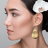 - Enjoy all of the style that teardrop earrings can bring when you slip on these Hammered Bronze Teardrop Earrings. The earrings feature a rounded teardrop shape with a wide, solid body that easily shows off the intricate hammered detailing that stretches across the surface of the earrings. The jewelry design has a slightly convex body that gives the earrings a bit of depth and detail, helping to set them apart from other similar teardrop-style earrings. They are handcrafted out of the strongest quality bronze metal in order to ensure their long life, and though they are strong, they are still lightweight and comfortable.The Hammered Bronze Teardrop Earrings are made and finished by hand, making them truly exceptional in terms of their quality. The bronze earrings have a protective clear seal that guards against tarnishing, and they are finished with durable Bronze French Earwires. The earrings are 2 inches long by 3/4 inches wide.