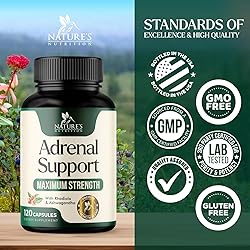 - Nature’s Nutrition Adrenal Support Supplements offer a premium blend of Ashwagandha, Rhodiola & Eleuthero to naturally supports adrenal health energy. Designed for both women and men, this formula supports adrenal fatigue & overall wellness. Ashwagandha, supports health response and energy throughout the day. Each capsule is expertly crafted for daily use and bottled in the USA under strict quality standards. Trusted by thousands, it’s an ideal choice for those seeking best natural, herbal plant-based adrenal. Nature’s Nutrition is your daily partner in energy and adrenal health.