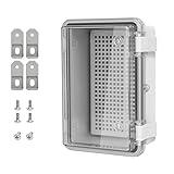 [ Sturdy Material ] - Hinged enclosure is made of high quality ABS plastic and has adequate thickness to offer a durable construction. This junction box has superior impact resistant and electrical insulation. [ Latch Design ] - Design with two plastic latches to offer electrical box a better seal performance with rubber grommet; Locking hole can be used worry free in outdoor environment. [ IP65 Rated ] - Waterproof and weatherproof feature effectively block splashing water, rain, dust, snow, oil, UV, etc., can be widely used for both indoor and outdoor applications. [ Various Application ] - Suitable for indoor and outdoor electric, communication, electron etc. And it can be easily drilled without cracking. Suitable one for your own creative projects. Clear cover let the box easy to check internal components without opening frequently. [ Size Info ] - External Size: 5.9" x 3.9" x 2.8"/150x100x70m(L*W*H); Internal Size: 5.1" x 3.1" x 2.6"/130x80x65mm (Please refer/ download dimension sheet for details)