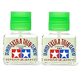 Tamiya Extra Thin Cement Glue Fine Tip 40ml - 2 Pack (White, Liquid, Plastic, Hobby Modeling Adhesives, Cement)