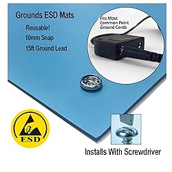 Universal snap kit easily installs a ground point into a range of mat thicknesses. Most anti-static products require a 10mm snap to connect commoint point ground cords. The Universal Snap Kit can work with most commonaly available ESD products WORKS WITH MATS UP TO 0.375" THICK: Includes 2 screws for thick and thin materials. Screws are 6-32 Flat Head Phillips machine screws; one 0.25? long and one 0.375? long. WORKS WITH SNAPS OR SOCKETS: Included in the kit is 1 each: 10mm socket, 10mm stud, washer and screw base. Works with most commercially available ESD grounding cords Installs a 10mm snap or stud to ESD workstation materials. Remaining will be either a 10mm stud or socket, and either a long or short screw to be discarded or saved for another application. INSTALLS WITH A SCREW DRIVER: Determine the position of the grounding snap. Punch a hole through the mat and screw on the socket or stud, whichever is preferred. All that is needed is a Phillips screwdriver.