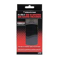 - STEALTH CAM 4-IN-1 CARD READER FOR IOS & ANDROID | USB-C, MICRO USB, USB 2.0 & LIGHTNING CONNECTOR Elevate your game cam experience with the Stealth Cam 4-in-1 Card Reader, offering unparalleled versatility for checking your hunting camera pictures & videos using any phone or tablet. Whether you're an Apple aficionado or an Android enthusiast, relish the convenience of viewing game camera images on your smartphone or tablet. Explore the wilderness through iBrary Link for iOS and OTG (On-the-Go) for Android devices. Boasting an array of connection interfaces, including micro USB, Lightning, USB-C, and USB 2.0, this reader ensures a seamless link between your game camera and a myriad of devices, be it your PC, Mac, or tablet. Unlocking a realm of possibilities, the 4-in-1 reader caters to both SD and microSD card types, accommodating storage capacities up to a whopping 256GB. It effortlessly adjusts to the specific demands of your storage needs, establishing itself as an indispensable companion for every outdoor excursion. Enhance your trail cam monitoring experience with the Stealth Cam iOS 4-in-1 Card Reader.