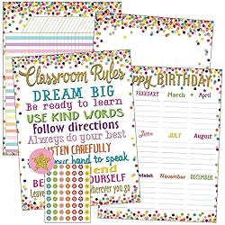 Includes 4 charts and 1 sticker pack Chartsw included: Rules, Incentive, Blank, Happy Birthday Charts measure 17" x 22" Stickers measure approx. 1/2"