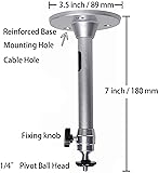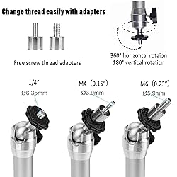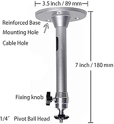 - Mini Projector Mount: A.Cost-effective Mini Projector Mount with accessories: 2 screw adapters to fit different devices with screw thread (3.9mm, 5.9mm or 6.35mm). 4 Screws and fillings to fix the projector mount on wall. 3 Plastic zip ties to manage cables.(others store don’t have) . C. Multi-functional as projector mount, camera mount, led mount and so on. Specifications: -Material: Aluminium Alloy -Length:7 inch /180mm -Rotation:360 degrees -Safety load:11 lbs /5 kg -Base Diameter: 3.5inch /90mm Package: 1 x Mount 1 x Manual 4 x Screws 4 x Fillings 2 x Thread Adapters 3 x Cable Ties