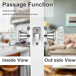 【Crystal Door Knobs】Crystal passage door knobs with Long-lasting zinc alloy plates.Sturdy and all genuine crystal. 【One Size Fits Most】The crystal interior door knobs fit for door thickness from 1-3/8" to 1-3/4"(35-45mm),adjustable latch 2-3/8" or 2-3/4"(60 or 70mm). 【Application】The crystal door knobs are passage function(Keyless),perfect upgrade for hall and closet doors. 【Easy to Install】Instructions and template included.Install glass interior door knobs in a flash, you can do it yourself! 【Satisfaction Service】We provide the best polished chrome glass door knobs to every customer.If there is any problem with the item, please feel free to contact us.