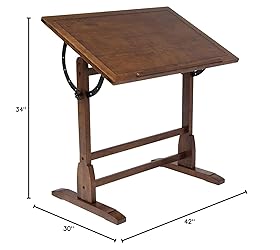 Assembly Required Yes; Special features Adjustable Angle Table Top from Flat to 81 Degrees; Mounting Type Floor Mount; Main Work Surface 36.00"W x 24.00"D; Included Components Keyboard Tray; Product Type Drafting Table Desk; Top Material Type Wood; Distressed Finish Type Coat/Paint Distressing; Base Material: Wood; Top Material Type: Wood; Mounting Type: Floor Mount; Furniture Finish: Oak; Included Components: Keyboard Tray; Assembly Required: Yes; Distressed Finish Type: Coat/Paint Distressing Base Material Wood; Create a Vintage Ambiance with Classic Design The vintage drafting table boasts an antique aesthetic, complete with a rustic finish that transports you to the turn-of-the-century era. This timeless design adds a touch of nostalgia to your workspace, making it perfect for various creative endeavors like painting, drawing, sketching, and writing. Furniture Finish Oak; Organize Your Creative Space with Built-In Pencil Groove and Ledge Featuring a 24"-wide pencil groove and pencil ledge, this table offers convenient storage for writing utensils, paintbrushes, and even canvases. Keep your workspace clutter-free and your tools within easy reach, so you can stay focused on your artistic pursuits. Dimensions 36.00"W x 24.00"D x 34.25" - 42.00"H at full tilt; Invest in a Sustainable Work Surface Crafted with a solid wood frame, this drafting table is not only aesthetically pleasing but also built to last. Its durable construction ensures that it will support your creative ventures for years to come. The included four floor levelers make it suitable for use on uneven surfaces, ensuring stability and comfort during your work. Item Weight 27.00 pounds; Elevate the Aesthetic of Any Room This versatile table is an excellent addition to various spaces. Whether you need an elegant touch in your office, an inspiring environment in your art studio, or an organized workspace in your craft room, this drafting and writing table is the perfect choice. Its vintage charm complements any room's decor, adding both functionality and style.
