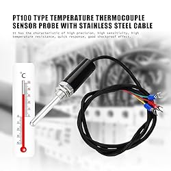 • Features: new and of . This product is PT100 type stainless steel thermocouple, and can withstand a wide temperature range of -200 ~ 450 . It has the characteristic of high precision, high sensitivity, high temperature resistance, , good shockproof effect. Adopted high-quality three-core high temperature, and wire. With great processing treatment, Argon arc welding seal, excellent sealing effect. Specifications: Material: Stainless steel Model: WZP - 187 Index number: PT100 Measuring range: - 50 ~ 450 Straight rod: 50mm / 1.97in, 100mm / 3.94in, 150mm / 5.91in, 250mm / 9.84in, 300mm / 11.81in (Optional) Cable length: 1.5 m / 59.1in Thread: * 1 Diameter of the tube: standard 7 mm Approximate weight. 54 ~ 74g The package included: 1 x temperature sensor with cable