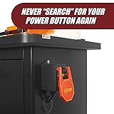 - We have all been in a situation where we need to quickly turn the power off on our router table or contractor table saw and both of our hands are a bit pre-occupied. Reaching down and underneath your router table or contractor table saw to try and locate the power switch can be very cumbersome as well as very dangerous while your feeding stock through.Many router table setups don’t even have an external power switch separate from the router itself. With this uniquely designed and easy to locate Paddle Button Stop Power Tool Switch you can simply bump the large stop sign paddle with your knee or hip to shut the power off. That means both of your hands can stay engaged on the project while you bump the power off with your hip or knee. A large green START button is always visible on the top side of the paddle. Simply push the START button to power on. Install the switch near or at hip level or in a position that you will be able to bump it when needed. The switch comes with installation hardware and can be mounted to most any type of material. The unit has two cords. The heavy duty female cord is 18” long and designed to accept the power source plug from your power tool. The heavy duty male cord is approximately 66" long and is used to plug the switch unit into your standard wall outlet. Please take note that the Paddle Button Stop Power Tool Switch is 15 amps and will not work with power tools drawing higher amperage. Keep this in mind when connecting to your machinery. This switch was designed to work with smaller machinery like routers and smaller table saws. Check your machinery before using this product. The stop sign paddle measures approximately 5-3/8” tall by 3-7/16” wide to make it easy to see and even easier to contact when needed. Mounting hardware is included but some surfaces my require hardware that does not come with the switch for proper mounting.