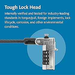 - Enganche de bloqueo único que crea la conexión más fuerte entre la cabeza del bloqueo y la ranura; el cable de acero al carbono de 6 pies es resistente a cortes y se ancla a un escritorio, mesa o cualquier estructura fija