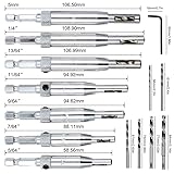 21 pcs Center Drill Bit Set, AFUNTA Self Centering Hinge Tapper Core Hole Puncher 5/64'' 7/64'' 9/64'' 11/64'' 13/64'' 5mm 1/4'' & 1 Pcs Hex Key & 10 Pcs Replacement Drill Bits