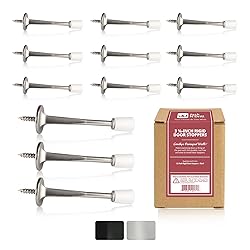 Jack N’Drill (3 ⅛) Rigid Door Stop (12 Pack) - Rustproof Satin Nickel Solid Door Stopper w/Durable Rubber Tips | Protects Walls & Doors from Damage | Great for Office & Home