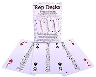 - Rep Decks are musical repertoire playing cards that allows you to play over a dozen fun and exciting games that test, challenge and improve your knowledge of classical saxophone large ensemble excerpts. A melodic excerpt from the standard classical saxophone large ensemble repertoire appears in the center of each card. All excerpts are shown at their CONCERT PITCH. This 54-card deck includes all 13 ranks in their customary suits plus red and black joker cards. The traditional one-eyed face cards have an "eyeball" image on them to remind players which ones they are. Play everyday card games and then download the free Studio Series Games Manual and Answer Key to begin using your wits and knowledge of classical saxophone repertoire to play clever Rep Decks games like Rep Recall, Team Rep Recall Relay, Rep Recall Challenge, Team Rep Recon, Rep One Eye on the Conductor, Rep Audition Roundabout and many more! Or use as flash cards, study aids or a randomizing tool for audition preparation. The Games Manual and Answer Key are not included with the deck of cards but are free to view, download and print at anytime. The tuck box that the cards are packaged in will be tight when it is new and first unwrapped but after a few uses the box will loosen up and be easy to open.