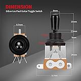 Feature: The 3 way guitar toggle switch is made of metal. The black switch tip is Aluminum anodized. Delicate appearance with strong Construction. Function: The guitar toggle switch is 3 position design. Lugs are tinned so that easy soldering. Including knurled mounting nut and flat washer. Size: The oversize of the pickup selector switch is 1.29*0.34*2.03 inches(32.7*8.5*51.5MM), The Threaded shaft is 12mm Dia. Life Cycle: The mechanical life of this 3 way toggle switch guitar is more than 100,000 cycles.The electrical life of this 3-way guitar switch is more than 10,000 cycles. Application: The guitar toggle switch is widely applied to gibson epiphone les paul electric guitar.