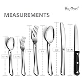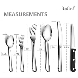 - The Advantages of Stainless Steel Cutlery Comparing with the Silver Plated One Low maintenance, hygienic, sturdy, resists oxidation at high temperatures, rust free, resistant to stains or damage from fruit acids; While silver plated one needs careful maintenance and easily gets oxidized. 24 Pcs Service for 4 Including: 4 x dinner forks: 4 x steak knives 4 x dessert forks: 4 x knives: 4 x Dinner spoons: 4 x Tea spoons: Great Bonus! 1 X Drawer Storage Trays Backup Cutlery Sets on Hand The set includes forks, spoons, and knives, if you prefer a relaxing night without the dinner mess, this bulk pack cutlery set can come in handy. Sleek Design for Comfortable Grip Ergonomically crafted with rounded curves and weighted handles perfect for a comfortable grip and balance in your hands. Sturdy& Easy to Wash Easily clean up in the dishwasher, and last for long use indefinitely. Dishwasher Safe, easy to clean. Universal Usage for Any Occasions This cutlery sets combine high quality, great durability and elegant design, it is perfect for any occasion; ideal for everyday family use, OR professional use at hotel, restaurants, pubs and more! 100% Worry-free Guarantee We believe in the great quality and durability of this excellent cutlery dinner set, We offers you 18 months' warranty, if there's any concern about the products you receive, please feel free to contact us.