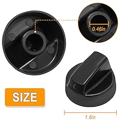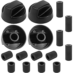 - Black Oven Control Switch Knob with 12 Adapters. Fit several applications Knob is approx 1 5/8" diameter (42mm) & approx 15/16" tall (24.5mm) Each knob includes 3 adapters ranging approx 1/4" to 1/3" (6mm - 8mm) inside diameter "D" posts Knobs have no wording or text on them - plain solid color Part Numbers: Universal Possible Repair Solution For: Selection will not set, will not turn, will not stay on. Fits models Number: Universal Package includes 16 pieces: 4 pieces control knobs; 12 pieces adapters in 2 different styles, 4 long and 8 short; 16 pieces in total, sufficient quantity for you to replace the old set. This part works with the following brands: To fit several applications including most gas & electric stoves / ovens Each knob comes with adapters to suit most applications Perfect for RVs, Campers, Camping appliances, etc. This is a brand new replacement part designed to fit the above mentioned models, manufacturers names & part numbers are used for reference purpose only (Any use of the brand name or model designation for this product is made solely for purposes of demonstrating compatibility)