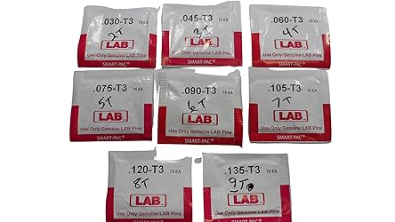 - 18 Half Packs of Lab Schlage brass bottom & Master pins, including 1/2 pack (1 segment) each of #0-#9B & #2-#9T pins. Each half pack contains 75 pins. MADE IN THE USA! Lab is the OEM manufacturer of pins and keying kits for many of the country's lock manufacturers and is the only brand of pins many locksmiths use. In over 30 years of rekeying locks, I've occasionally been forced to use other brands, and always come back to Lab. I will be glad to substitute sizes or multiples of any size to comprise the 18 half packs of pins.