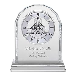 Executive Gift Shoppe | Custom Engraved Solid Crystal Personalized Quartz Clock with Arched Top
