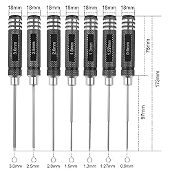 - Features: 1.These Hex Screwdriver are made made of high quality , well processed by precision CNC. 3.This set contains total 7 pcs Hex Screwdriver in different sizes of 0.9MM / 1.27MM / 1.3MM / 1.5MM / 2.0MM / 2.5MM / 3.0MM Hex Screw included that meet your need. 4. Beautiful designed handle is light weight and ensures a comfortable use. 5.They can be widely used for repairing or assembling remote control cars, model airplanes, bench Work, precision engineering etc. Description: Product material: Steel Product size: 175mm/6.88 inch Product specifications: 0.9mm / 1.27mm / 1.3mm / 1.5mm / 2.0mm / 2.5mm / 3.0mm Product color: black