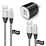 Flecom Micro USB Cable, Charging Block, 6FT Fast Charger Android Phone Cords with 2.1A Dual Wall Charger Compatible for LG stylo 2/3 LG G3 G4 K30 K20 Plus K7 K8, Kindle Fire 7 HD 8 10 Tablet