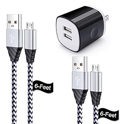 【What You Get】 Flecom Wall Charger Plug with 2 Pack 6FT Fast Charging Android phone charger cable, 12-month warranty, please contact us if any questions or concerns, we kindly customer service team will reply you within 24 hours. 【2 Pack Micro USB Cable】 Fast charging and sync well with LG Stylo 2/3 Plus, LG Q6 G4 G3 G2 V10 K20 K20 Plus V30 K8 K7 K4 K10 K30 2017 2018, LG Aristo 2 3 3+ 4 4+, LG Phoenix 3 2 Plus/fortune 2, LG Xpression Plus, Kindle Fire 7 HD 8 10 Tablet, Samsung galaxy S7, S7 Edge, S6 S6 Edge, S7 S6 active, Galaxy J7, J5, J3, Grand/Core Prime, On5, Note 5 4, Tablet S2 S3 S4 more android devices with micro USB ports. 【Durable & Tangle-Free】 Nylon Braided design make this micro usb cable more durable, more flexible and sturdier than the normal ones. Tangle free cord design eliminates bunching, tangles and knots. 【Dual Charger Head Brick】 Smart & safe wall plug allows you to charge your smartphone and tablets at the same time, save your time. Wall charger cube box can automatic recognize any USB Support devices, maximize the charging efficiency up to 2.1Amp/5V. All get UL certifications for multiple protection to keep your devices safe. 【Safe Charging】Charger adapters are made of high-grade material for multiple protection against over-current, over-temperature, over-voltage, short-circuit and EMI to keep you and your devices safe.