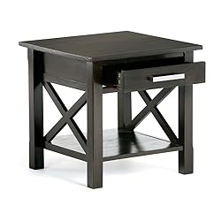 - Good things really do come in small packages. Nothing could illustrate this better than the design of our Kitchener End Table which features one drawer and one bottom shelf providing plenty of storage space. The table is sized perfectly to allow room for a table lamp, book and family photos. A perfect companion to any sofa, arm chair or bed.