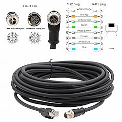 Ethernet network data communication CAT6A cable M12 X-coded 8-pin male to RJ45 connector for Cognex data communicationMan 260 280 380 370 470 580 reader / In-Sight 2800 3800 2000 9000 8000, 7000 Gen2 vision sensor, 3D-L4000 D900. 2 meter / 6.56 feet. Part number CCB-84901-2001-xx M12 Ethernet cable for Basler Baumer image processing vision sensor, for Keyence IV3 sensor / SR-5000 barcode reader, for Datalogic matrix 220 320 reader, for Microscan HAWK MV-4000 camera, for SICK sensor gigabit network, for Triton, and more machine vision system to network communication application like PC host computer PLC router switches M12 cable is widely used in sensor, machine vision image sensor camera system, barcode scanner reader, actuator, encoder, industrial Ethernet, network, outdoor LED display, industrial automation control, servo, motor, robot, fieldbus, EtherNet/IP, profinet, EtherCAT, switches, router, PC host computers, PLC, process control, PoE injector power. Stanard EIA/TIA 568B The cable can effectively avoid electromagnetic interference signals, and can transmit data high speed and stability, up to 10 Gbps. Cable with multi-layer aluminum foil braid shield, cotton wire filling, twisted pair 24AWG PVC black jacket. The cable is resistant to abrasion, oil, dirt, oxidation, bending, heat, flame retardant. It is highly flexible, stretch resistant, sun UV resistant, waterproof dust-proof IP67 and can be used in drag chains and harsh industrial environments Connector features: solid and smooth connection. Shielded, threaded locking M12 plug with strain relief for durable stable use in harsh industrial application. Oxygen-free copper gold-plated contacts. It is vibration-resistant. Metal housing (with shielding) can be shielded from EMI / RFI interference in all directions, and meet the IP67 level of dust and water resistance standards
