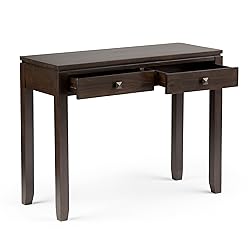 Pine Wood COMPACT SIZE: Measuring 15"D x 38"W x 29.5"H, this slim yet substantial console table offers practical storage and display space ideal for smaller rooms. SOLID WOOD BUILD: Handcrafted from high-quality solid wood for superior durability, natural beauty, and long-lasting strength. MAHOGANY BROWN FINISH: Rich mahogany brown stain sealed with protective NC lacquer to highlight wood grain and ensure a smooth, resilient surface. TWO DRAWERS: Equipped with metal glides for smooth operation, providing convenient concealed storage for keys, mail, or everyday items. EASY ASSEMBLY: Includes all hardware and illustrated instructions for quick, secure, and hassle-free setup. Efforts are made to reproduce accurate colours; however, slight variations may occur due to photography and individual screen or monitor settings. We believe in creating excellent, high quality products made from the finest materials at an affordable price. Every one of our products come with a 1-year warranty and easy returns if you are not satisfied.