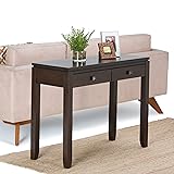 SIMPLIHOME Cosmopolitan Console Table - 38 inch Wide Solid Wood Sofa Table in Mahogany Brown, Contemporary Table for Entryway or Living Room with 2 Drawers, Floating Top, and Bronze Knobs