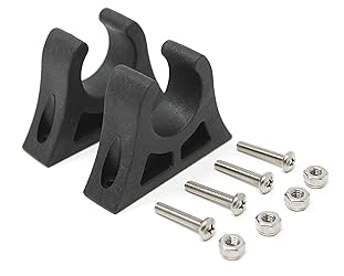 INCLUDED. Two molded paddle clips and installation hardware. CONVENIENT. Molded rubber paddle clips allow for easy Paddle or mud anchor storage. SOLID. Molded paddle clips made out of solid rubber. SIZE. 1-1/4 clips fit paddles with a circumference ranging from 1-1/4-inches to 1-1/2-inches. HARDWARE. Included for installation is 4 stainless steel screws and 4 stainless/nylon lock nuts.