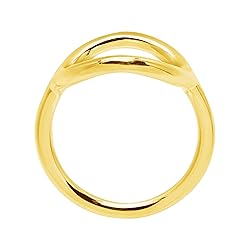 What goes around comes around in the Karma Ring, featuring an 18K gold-plated sterling silver band with a hollow, gold-plated circular goldsterling silver section atop the band MODERN GEO: Your high school geometry class couldn't have prepared you for the geo trend taking over the runways! These sterling silver styles are designed from shapes like triangles, crescents, circles and chevrons that take on a more organic, hand-crafted look with the help of brushed, textured or hammered detailing. These modern designs can be paired with your favorite geometric patterned top for a head-turning look or simply accessorize your go-to casual ensemble with a dash of mod glam. 18K GOLD-PLATED STERLING SILVER: Enjoy the soft feminine look of rose & yellow gold along with the affordability of sterling silver MEASUREMENTS: Ring face measures 5/8 inches in width Imported