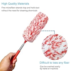 - Microfiber For More Effective Cleaning Microfiber is anti-static and non-scratchy, and actually attracts dust, cobwebs and dirt - making these dusters a far better and more effective alternative than regular feather dusters. Rather than just pushing the dirt around, now you can actually pick it up and get rid of it! Extendable and Bendable Microfiber Duster can Extendable from 13 inch to 31 inch,the Head length:10 inch; The head can be bendable,and Easily clean those hard to reach spots. Widely used Use these dusters to clean your electronic devices, living room, kitchen cupboards, high ceiling corners, car interior and more! This all-purpose dusting solution will serve all your home & automobile cleaning needs for years to come.