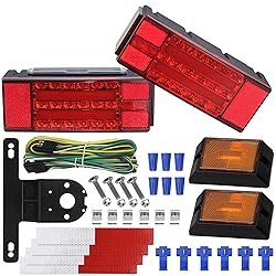 Complete Trailer Light Kit: This Trailer Light Kit includes 2 combination tail and brake/turn signals lights, 2 amber LED marker lights ,25-ft wiring harness,license plate bracket and mounting hardware bag, everything you need to do the install included. IP68 Waterproof and Submersible trailer lights: The circuit board is completely sealed and IP68 waterproof, , which protects the board from short circuit even soak in the water, it can work long hour in rainy days, fog day or snow day, it is totally submersible(Test Underwater light for 24 hours). Super clear and brighter SMD 5050 lamp beads with Halo Glow design produces a super fashion light, no glare, Up to 50,000 hrs life expectancy Compliant with DOT standards, perfect replacement trailer lights for RV, tractors, canoes,towing vehicle, truck, trailer, boat, bus, Lorry, Van, caravan, snowmobile etc Product Size: 8*2.95*2.83 inches, 25ft wiring harness, so that it is long enough to reach end of trailer,instruction included.