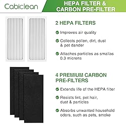 【FULLY COMPATIBLE with Hamilton Beach 04383 04386A AIR PURIFIER】This premium 04383 replacement filter is specifically designed to fit Hamilton Beach 04383 04384 04385 04386A Air Purifier, Replace Part # 990051000. 【HIGH-PERFORMANCE 3-IN-1 FILTER】Our 04383 air filter attaches 99% of airborne particles such as pet dander, pollen, and dust, as small as 3 microns in the air. 【HIGH EFFICIENCY & LONG LIFE】Our 04386A air filter replacement for Hamilton Beach air purifier is made of eco-friendly non-woven fabric and activated carbon, to ensure high-efficiency filtration and longer service life. 【VALUABLE PACKAGE】The package includes 2-pack HEPA filters and 4-pack activated carbon filters, easy to install. The 04383 replacement filter should be replaced every 3-6 months depending on the air quality in your area and the use of the Air Purifier to ensure optimal performance. 【BUY WITH COFIDIENCE】 Cabiclean has been committed to providing all customers with high-quality and cost-effective air purifie r filte rs and helping customers build a better living environment. We provide 90 days warranty or refund for each customer, we value each customer, and our after-sales team will provide each customer with satisfactory service. Filter made of FSC-Certified paper