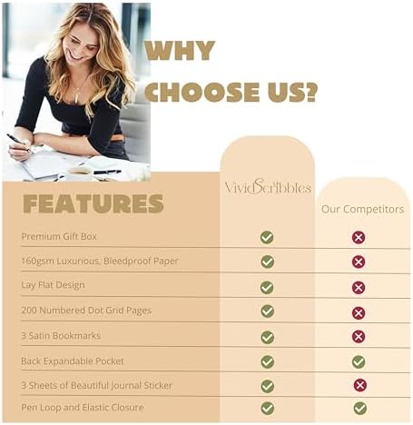 - Vegan Leather Cover with Forest-Friendly Paper: Crafted with an elegant dot grid journal cover, this dot journal notebook is made from sustainable materials. The premium vegan leather finish adds a touch of sophistication while staying eco-conscious.