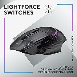 A REFUNCED ICON: From the legacy of Logitech's most popular G502 design, the G502 X PLUS has been reworked and redesigned with the latest innovations in gaming technology; available in black and white LIGHTFORCE Switch: Brand new hybrid optical-mechanical switch technology for incredible speed and reliability, as well as precise actuation with crisp response, for hours of high-performance gaming LIGHTSYNC RGB: This mouse has glowing 8-LED lighting that adapts while gaming, with power-ups for setup/off and battery optimization through active game recording LIGHTSPEED wireless: This gaming mouse has high-quality connectivity and an updated protocol that delivers 68% faster responses than previous versions and improved reliability HERO 25K Gaming Sensor: Incredibly accurate down to sub-microns for high precision with zero-smoothing/filtering/acceleration for high gaming performance every time on PC or laptop REDESIGNED DPI Shift Button: The wireless optical gaming mouse features a reversible and removable DPI shift button for precise adjustment according to grips and preferences Redesigned two-way roller: Switch between hyperfast free rotation and precise locking mode, and tilt the mouse left and right for two more customizable controls POWERPLAY compatible: The G502 X PLUS wireless PC gaming mouse remains charged at rest and during game, with our unique wireless charging solution (sold separately)
