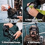 Prevent dive masks from fogging underwater with these powerful anti-fog drops that perform in all water temperatures Clean scuba masks with this 2-in-1 concentrated, alcohol-free formula; one 1.25 fl oz bottle contains 530 drops Apply easily on all glass and plastic scuba, snorkel, and dive mask lenses; it won’t harm silicone or rubber DO NOT USE ON: swim goggles, eyeglasses, or sunglasses; instead use GEAR AID Anti-Fog Spray Packaging may vary