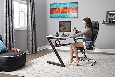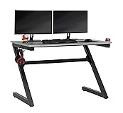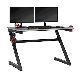 - The Zone PC Gamer Computer Desk with Charging Station, Cup and Headphone Holder by SD Gaming features a large 45.25 w x 27.5” deep gaming surface with a simulated carbon fiber finish and a beveled front cut out that keeps you closer to the monitor without sacrificing room for your accessories. It also provides gamer specific features: a cup holder and headphone hook that save desktop space. This gaming table has a power console that provides 3- grounded outlet receptors and 2-USB charging ports to keep your accessories powered. The desktop also has a cord management hole with cover for organizing your electrical cords. The steel frame has a powder-coated finish that resist scratches and corrosion. The floor levelers and crossbars provide stability.