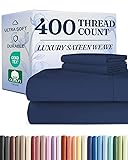 FULL 100% COTTON SHEETS: Made from 100% cotton with a smooth 400 thread count sateen weave, these Full sheets offer soft, breathable comfort with a luxurious feel at an affordable price. Woven with quality long-staple cotton yarns, they provide lasting comfort you can enjoy night after night. DEEP POCKET FIT FOR UP TO 16” MATTRESSES: Designed for a secure fit, our deep pocket Full fitted sheet easily accommodates mattresses up to 16 inches deep, including pillow top and taller mattresses. The all-around elastic helps keep your fitted sheet in place so it stays snug without shifting or popping off. PURE COTTON SOFTNESS THAT LASTS: Woven from 100% natural cotton with quality long-staple yarns, this sheet set is made for breathable comfort and reliable durability. The fabric feels soft from the start and continues to soften over time, giving you a cozy, comfortable sleep surface wash after wash. YEAR-ROUND COMFORT WITH A SILKY SATEEN FEEL: The smooth sateen weave gives these 100% cotton sheets a soft, elegant finish with a comfortable drape. Lightweight and breathable, they help reduce trapped heat and moisture so you can sleep comfortably in every season, especially in warm bedrooms. EASY CARE COTTON SHEETS THAT GET BETTER WITH TIME: Machine washable for simple everyday care, these 100% cotton sheets are made for long-term use and natural comfort. Like quality cotton bedding, they may feel even softer after washing, while the durable weave helps maintain a smooth, comfortable feel night after night.