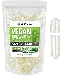 - Easy to Fill - Whether you like to manually fill your caps or use a capsule filling machine, our size 3 empty vegetarian capsules are designed with tough anti-break conisnap rounded ends and are transparent to make precise filling easier than ever. Our small size 3 capsules hold 150mg to 300mg of powdered supplements depending on density. Snap Shut Design - Our expertly engineered click shut design ensures you don't waste any of your valuable powders, herbs or ingredients during or after filling your pills. The click shut feature also helps protect the contents of your vegetable capsules empty from humidity and air. Have peace of mind knowing that your vegan empty capsules are secure. Easy to Digest - Each veg capsule is made from 100 percent HPMC vegetable cellulose and will dissolve in your gastrointestinal tract for maximum absorption of your supplement ingredients. These veggie caps contain no additives or preservatives. Choose this convenient 1000 count bulk option. At XPRS Nutra, we go the extra mile to help you attain the highest quality pill casing capsules to fill your pre-made supplement, nootropics and fitness vegan gelatin capsules. Our vegi capsules empty 3 are here to help make your life easier. Subscribe and Save - You'll love the superior quality, security and convenience of our vegan size 3 capsules. We only source from the highest quality manufacturers. That's why your order of pill capsules empty is secured with us.