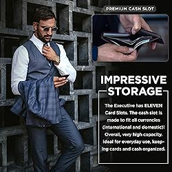 12 Month Warranty - The SERMAN BRANDS Warranty covers any factory defects as a result from the manufacturing process of the product. Saftey. Privacy. Security - Our wallets are equipped with advanced RFID SECURE Technology, a unique metal composite, engineered specifically to block both low and high frequencies at 125KHz, 10MHz to 3000 MHz signals. This includes 13.56 MHz which is what credit cards use. Ensuring high levels of security give you peace of mind and allows you to be safe and secure during travel and work. Impressive Storage - Two Quick Access ID Windows allow for easy access! ELEVEN Card Slots allow for you to carry all of your important cards! Best Fits 10-12 cards! Premium Cash slot made to fit all currencies (international and domestic)! Overall, very high capacity yet compact design. Wallet Size: 4.40" in. x 3.5" in. 0.6" in. Ideal for everyday use, keeping cards and cash organized. Durable - The SERMAN BRANDS Executive model is a modernized bifold crafted to hold all of your essentials and more! It’s durable construction and premium materials make it a convenient and stylish carry when traveling, at work, at your kid’s soccer game, church ministry, and basically everywhere you go. Although super spacious, it still holds a compact profile. Full Grain Leathers - Made with the Finest Full Grain leather. Our vintage leathers stay true to their nature by being receptive to scratches. With use the wallet will absorb the natural oils of your hands which will allow the wallet to develop a rich and dark color allowing each wallet to have a compelling story to tell. Available in the colors: Texas Brown, Canyon Red, Charcoal Black, Slate Gray. Our dressed leathers are coated (in a smooth interface) to protect the wallet from the daily grind.