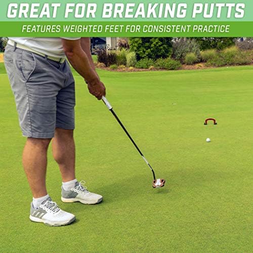 - ULTRA PORTABLE: Quick assembly for putting practice on the green, at the office or any flat surface (carpet recommended); Weighted gate feet also reduce movement during practice and can be staked in using tees; Store in the carrying case